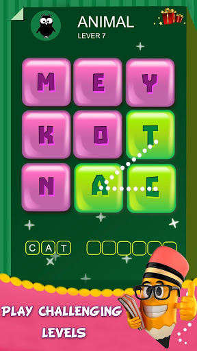 Just swipe and connect letters to build words. You don’t have type a word! It’s easy and full of fun. Enlarge vocabulary, train brain, and keep your mind young!