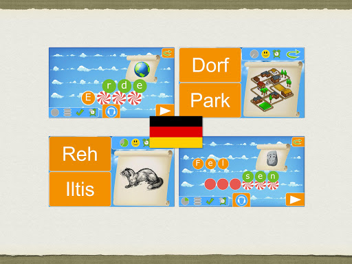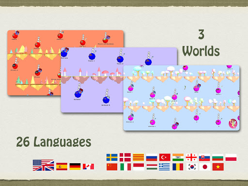 The game is adapted for children aged 4 to 8, regardless of whether the pupil goes to school, kindergarten, pre-school or primary school. Children in higher grade may also profit from the game in case of various reading and/or spelling difficulties such as dyslexia. You can also use the game to learn some basics of foreign languages, regardless of your age: thanks to the audio clips, you can discover learn the pronunciation of the individual phonemes in each word. You hence not only learn a translation of the word, but have a native speaker show you the meaning and the spelling of each word. Of course, this is not meant to be a complete linguistic pedagogical environment: the words offered are all nouns and there are as of yet no adjectives, verbs and no punctuation. Learning the language is based here on a challenging speaking vocabulary trainer. This app however can be used as an interactive introduction to the acquisition of speaking skills for individual words. The game does not contain a dictionary and is not split up in individual lessons, but rather in levels with various themes such as pirates, animals or vehicles.
