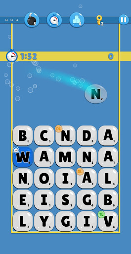 - Drag falling letter tiles to avoid tall stacks and to drop them in strategic locations.