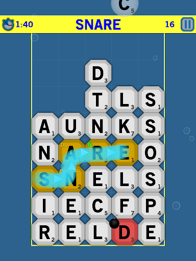 Activate your brain as you quickly search the stationary letter tiles to spell words by connecting letters in any direction including diagonal. The same letter tile can only be use once per word, but you can change directions as you drag to connect any direct neighbors of the tile you are currently touching.