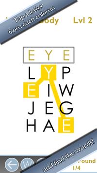 Word Find is a simple, fun and addictive words game for children and adults. The rules are very simple: Tap one letter from each column to find the hidden words. In Word Find there is no time limit or a chance to lose; you just play freely until you find all the words. You can use clues to get some help in those moments where you can´t seem to find a word but use them carefully cause they are limited!