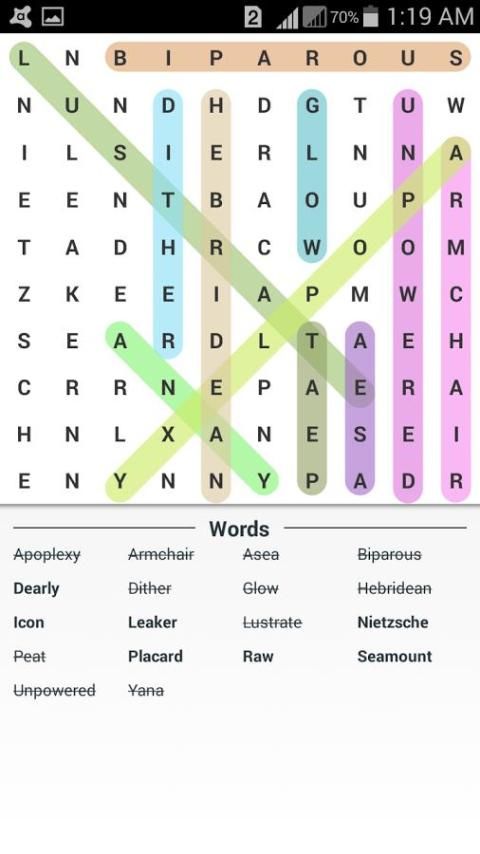 The game’s goal is very simple, you have to find the words hidden in the grid. If you find a word given below , mark with your finger from the first letter to the last one going up, down, left, right, or diagonal.. In doing so, if the word is correct, it will be marked with a distinctive color and you can search for the next.
