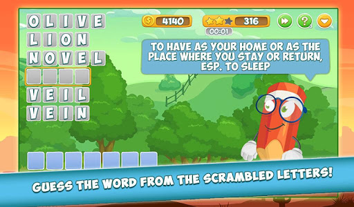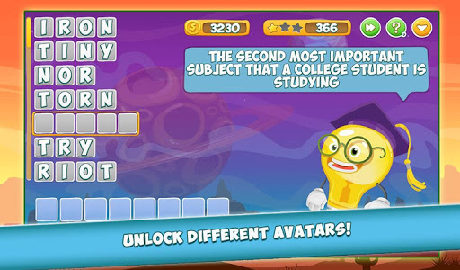 On each level you will have 8 letters to arrange into new words. Tap on the empty word spaces for clues to each word. Connect letters to build words. Tap the question mark for a hint and reveal a letter. If you’re stuck, there are extra hints available. There will many different words for you to compose on each level!