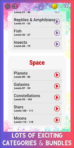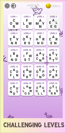 * Theme Based : Word puzzles organised into various categories and bundles. For e.g Animals - mammals, birds etc. A bonus word in every level related to the theme of the bundle.