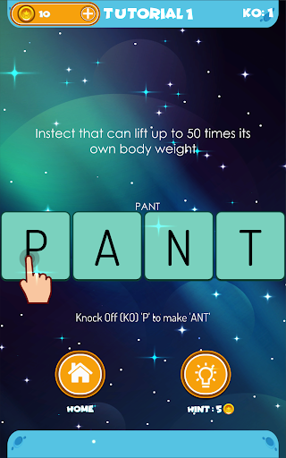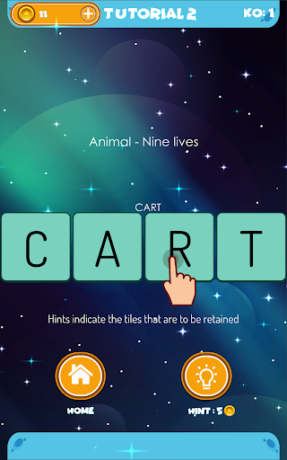 - Eliminate required number of letter tiles to create a word based on the clue or question