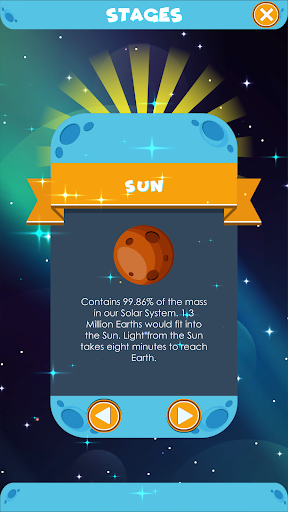 - Tap on a planet or moon to replay a stage