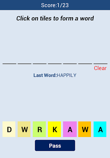 An exciting word game for both kids and adults. Form words from the jumbled letters and get to know about new words. Provides lots of fun along with learning.
