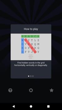 - Infinite play with automatically generated grids - Customizable letter size - Nice highlighting colors - Visual animation when you find a word - Keep your best scores