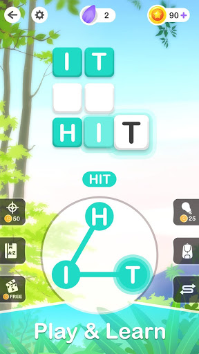 - Find as many words as possible to unlock levels and earn extra bonus coins.