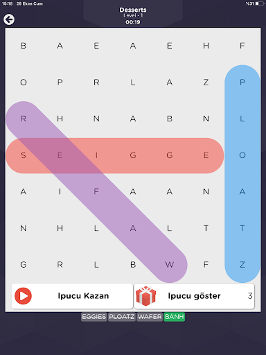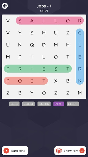 Find the hidden words and then swipe up, down, left, right or diagonally to mark them. The game is starting from easier levels, then continues with the harder ones, challenging you gradually. Earn 3 stars in each level to be the best!