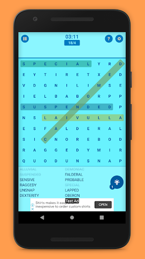 Pleasant puzzle game in quality interface with dark theme mode, limeted time mode, unlimited time mode and different word game difficulty levels.