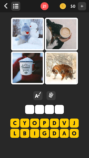 - Look 4 pics and guess 1 word that is related between them. With each word that you guess, you will win the coins that will help you to reach new levels.