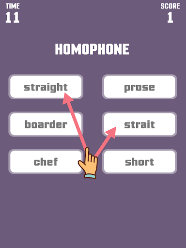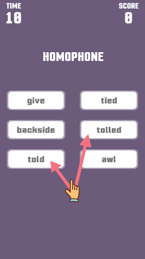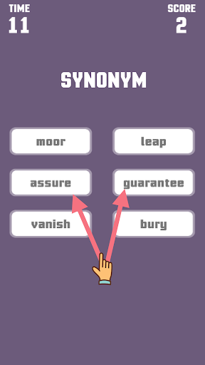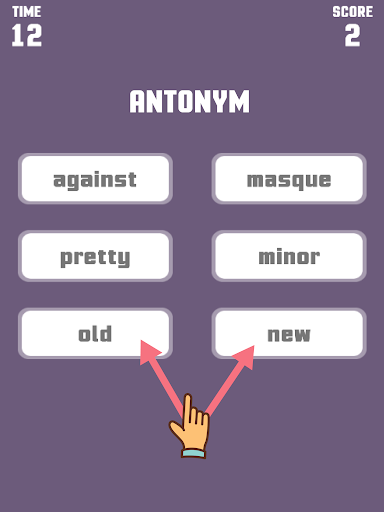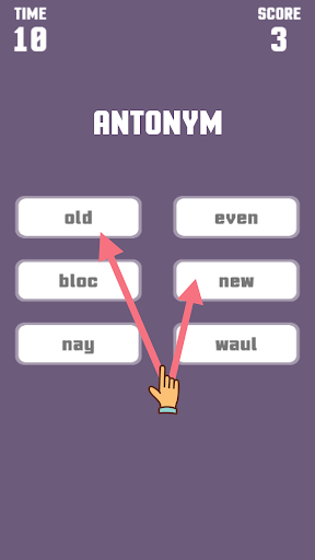 This game is an addictive word puzzle game which you have to match two words together by the type of Synonym, Antonym or Homophone.