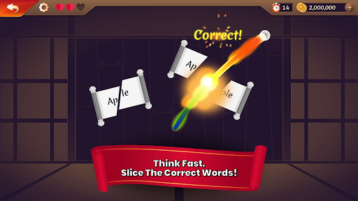 -Slice the scrolls containing the words with the correct spelling to save them from being taken away by the evil conqueror.