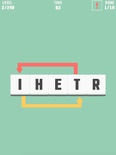 Each level has about 10 words that their letters are mixed and you must look and rearrange the letters until they are in the right order.