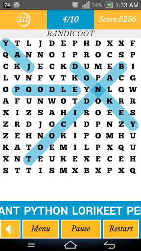 This Word Search game has more than 20000 puzzles, 11 topics and 3 difficulties!