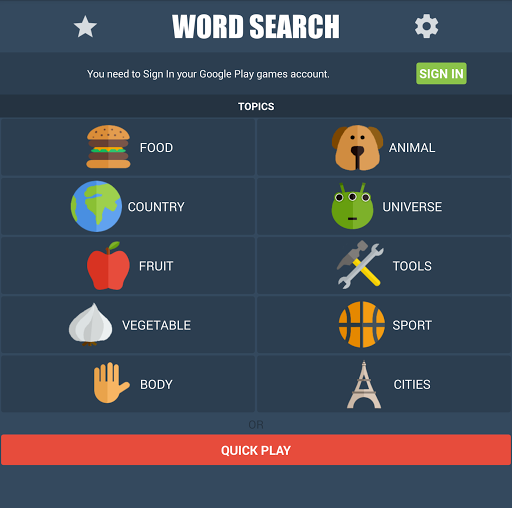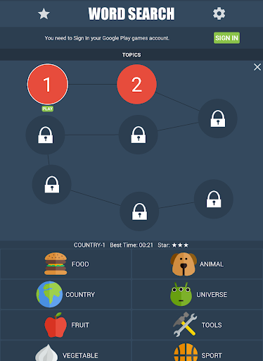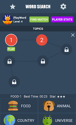 Word Search game is simple! Find hidden words in eight directions and mark it as fast as you can. Complete the levels with three stars and exercise your brain with thousands words.