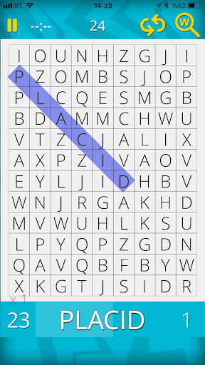 Amazing mode invented by us for real word search lovers. You begin with a count down timer which speeds up according to your progress.