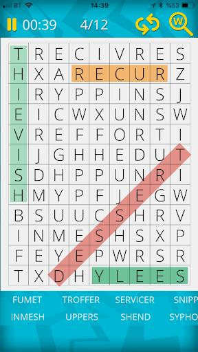 Increase your vocabulary and have fun doing it with this addictive word search game. Find out the words in the grid on any direction including diagonals...