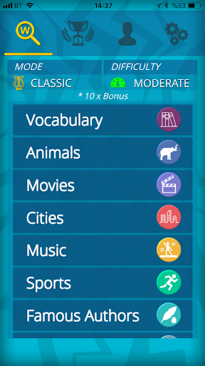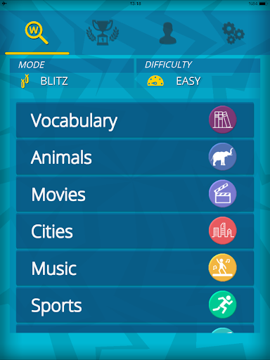 There are 3 difficulty levels and 3 Game modes in the game which can be selected at the top bar of the topic selection menu.