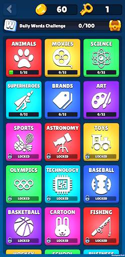 Play Casual or Progress game modes! In the casual game mode, you can generate a new random game board to play at your own leisure. In Progress mode there are a number of levels you must beat to gain coins and keys! Coins can be used to give you hints on difficult levels and keys can be used to unlock new categories!