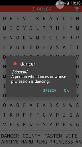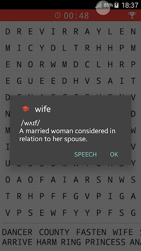 Play game with WORD SEARCH and learn English through word in game. WORD with pronunciation, definition function for each word from over 3000 common words.