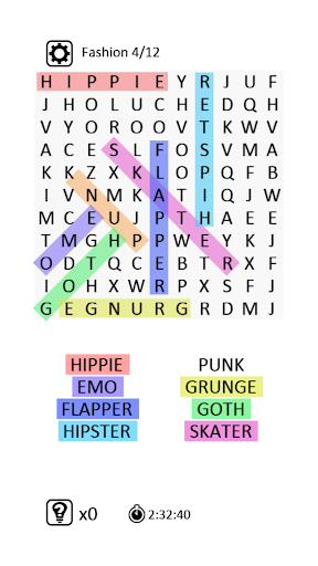 With 10 categories from Sports to Fashion or Nature this is not only a word search for adults. Our game is completely suitable for people of all ages which also makes it the perfect wordsearch game for kids.