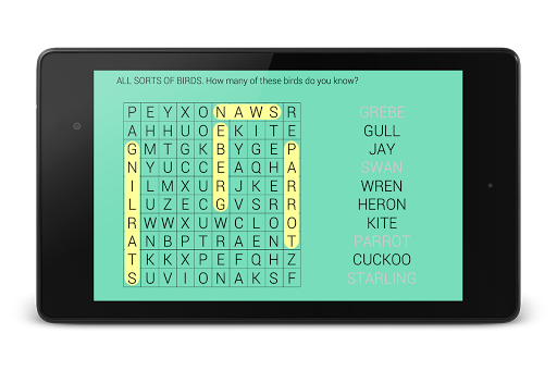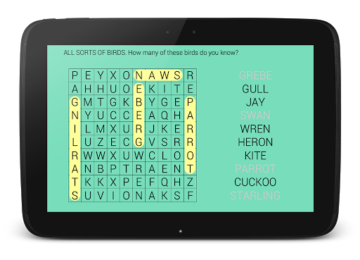 Word Search For Kids is a simple but engaging game of word search for children aged 6 plus. The game consists of over 90 categories and over 2000 words.