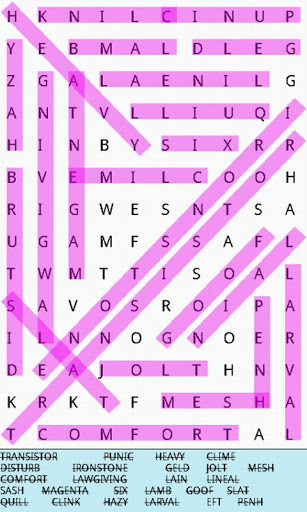 A classic Word Search Puzzle. Features over 24,000 words! Puzzles are created randomly, so you will never play the same puzzle twice.