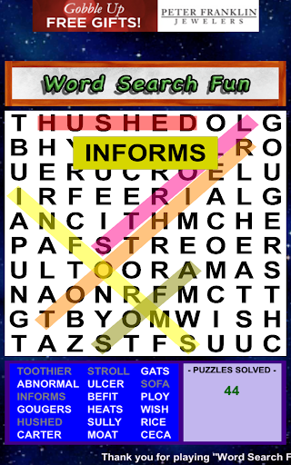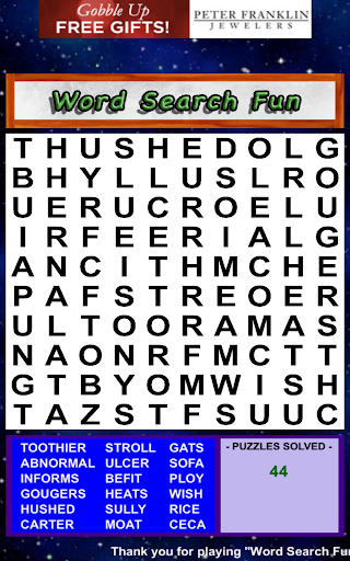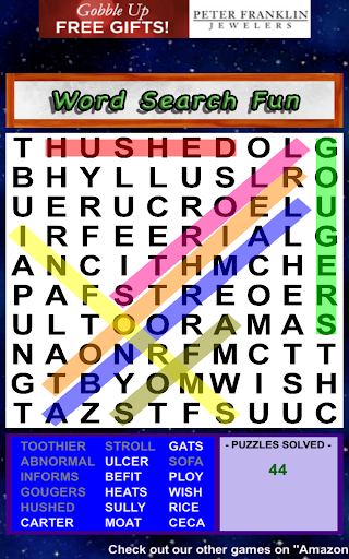 Word Search Fun is a simple, free and fun word search puzzle game! With unlimited random word search puzzles from a large database of English words! Hours of fun for everyone! Download and play for FREE! Play Word Search Fun puzzle game today!