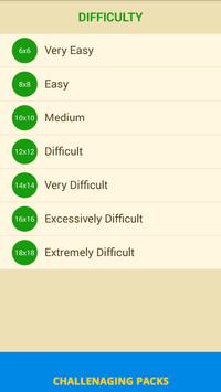 Easy: Perfect for little kids. The board is 6x6 so it's easy to find the words and solve the puzzle. In addition, the clue system helps you find a new word when the child is stuck.