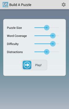 Multiple puzzle sizes, difficulties and number of words with multiple levels of animated distractions to try to steal your attention...