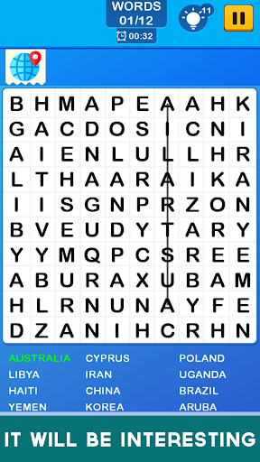 * The first word search game offers free coins.