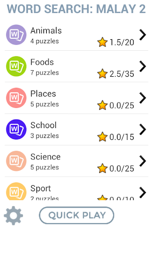 Word Search: Malay 2 offers several puzzles of words in Bahasa.