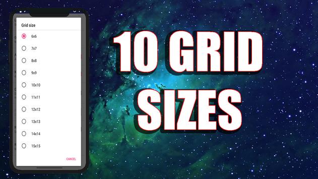 11 x 11, 12 x 12, 13 x 13, 14 x 14, 15 x 15 games up to bigger challenges as you advance!