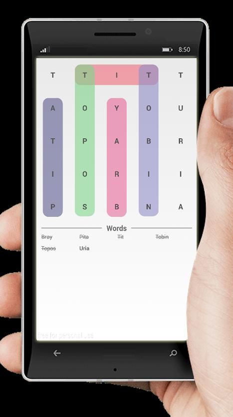 Search and find all the words hidden in the grid. In this search word puzzle you can choose between eight difficulty level, play in timer mode and compare your scores with your friends and people around the world. All puzzles are automatically generated by the app for endless fun.