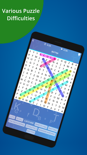 A highly addictive word search game in English language. Train your brain, improve your spelling, vocabulary and puzzle skills in this fun, entertaining and challenging, but not too difficult game.