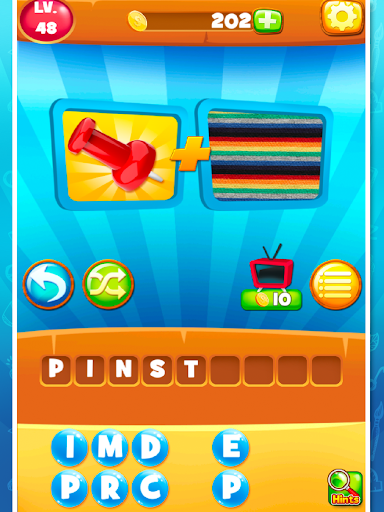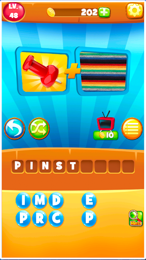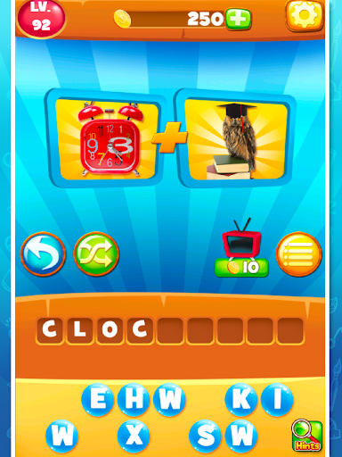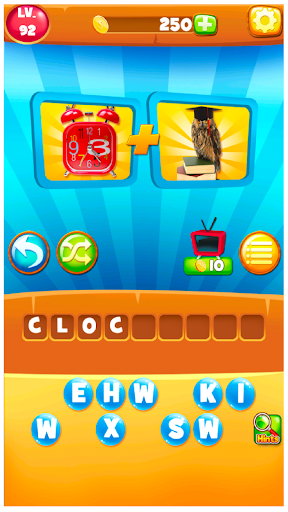 Move onto Combo Words, where two pics make one word puzzle or phrase. For example, see pics of DOG and HOUSE: combine the photos to solve for DOGHOUSE. 2 Pics, 1 Word!