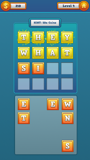 Tap or drag letters to spell ANY 4 words! Beat the levels to earn FREE coins!