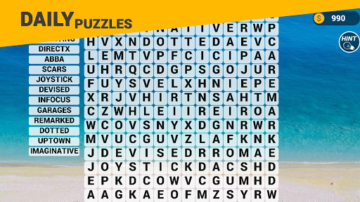 Word grids and text sizes are optimized for playing word search games on mobile devices