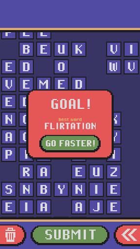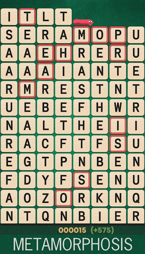Tap the letters to make words (3 letters or more). Once a word is accepted, the letters will disappear and create more space for the worm to crawl into. The screen is slowly scrolling but longer words rewind the screen a bit to give you more time.