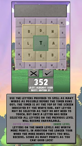 WordZig is a fast-paced race against the clock to score as many points as possible! You score points by finding words among the scrambled letters. Bonus points are awarded for using the center most letters. But there is a twist! You may start your word with any letter, but once you use a letter from the center ring; All the letters on the outer ring become unavailable. Play smart as this unique rule presents its challenges!