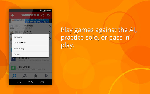 You can play Wordosaur in solo mode, match players from around the world and of course setup a competitive game with your friends!