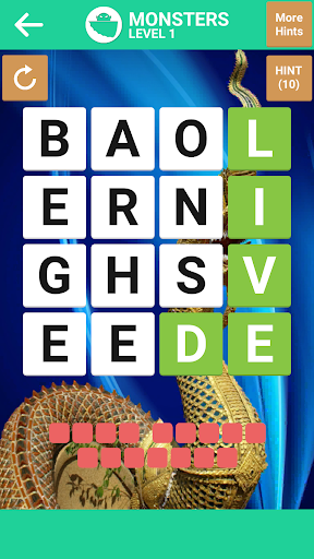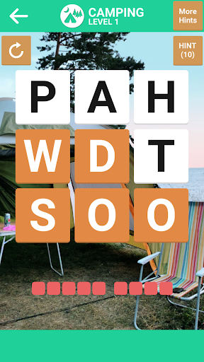 - If you need some help, tap on Hints button which will show the first letter of the word match