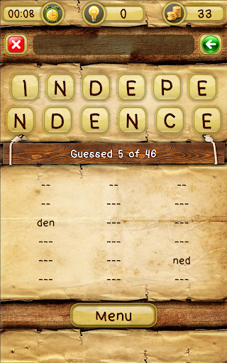 "Words in a word" - great puzzle game that improves and expands your vocabulary. Your challenge is to find all possible words that you can make up from letters of a given one. You can also view the meanings of guessed words. Hints system gives an opportunity to get out of a critical situation and continue to play.