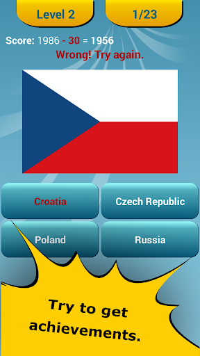 - at every level there are 23 countries flags (a total of 230 national flags to guess!),