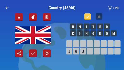 Download & play Worlds Flags Geography Quiz! Test your knowledge about worlds flags & capital city of every country on earth! Every nations of the world has its own flags and capital city. Can you recognize and memorize them all? Almost everyone recognizes USA flag, but do you know every euro flags, UK flag, and other national flags of the world? Even if you have memorized Euro flags or Europe maps, there are still other continents to conquer! Our geography test will surely challenge you and push your knowledge to the limit. This geography trivia is a fun activity for the whole family and increase your knowledge.