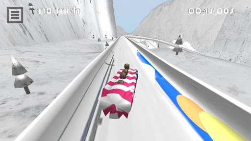 Teams make timed runs down narrow, twisting, banked, iced tracks in a gravity-powered sled. Modern tracks are made of concrete and artificial ice. They are required to have at least one straight and one labyrinth. Ideally, a modern track should be 1200 to 1300 meters long and have at least fifteen curves. Speeds may exceed 130 km/h, and some curves can subject the crews to as much as 5 g. Luge and Skeleton events have only 1 or 2 person sleds.