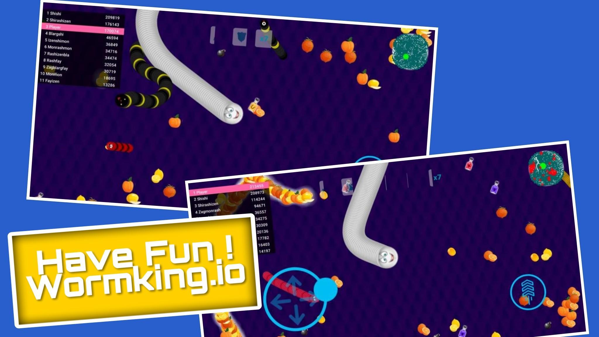 Wormking.io (Snake Zone 2020) is the amazing game in this year, take a role of snake as io whose main goal is to grow by eating dots. Check out leaderboard of best womking io / cacing io 2020 players and compete with them by choosing best worm. Experience new way of slithering with your favorite Snake Worm Crawl Zone in your smartphones.