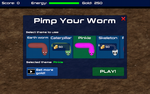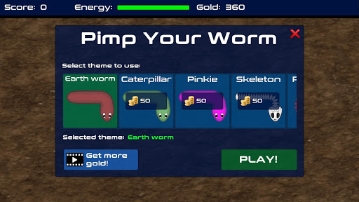💰 Collect gold to buy customizations for your worm.
